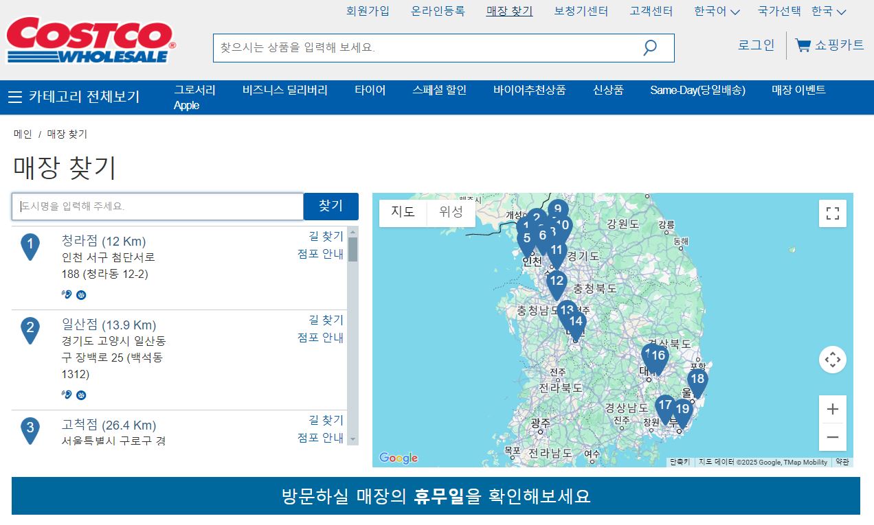 코스트코 전국 매장 정보 및 위치