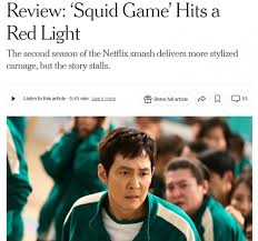 할리우드 리포터도 '넷플릭스의 한국 히트작이 날카로움을 잃었다'는 제목의 기사에서 비슷한 의견을 제시했습니다. 이 매체는 "오징어 게임의 두 번째 시즌은 완전히 실망스러웠다"고 평가하며, 첫 번째 시즌에서 보여준 재미와 기발함이 부족했다고 지적했습니다.