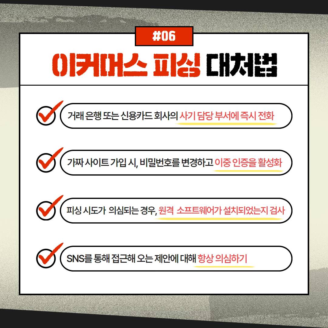 이커머스 피싱과 리뷰알바 사기를 예방하기 위해서는 다음과 같은 핵심 대책을 숙지하고 실천해야 합니다.