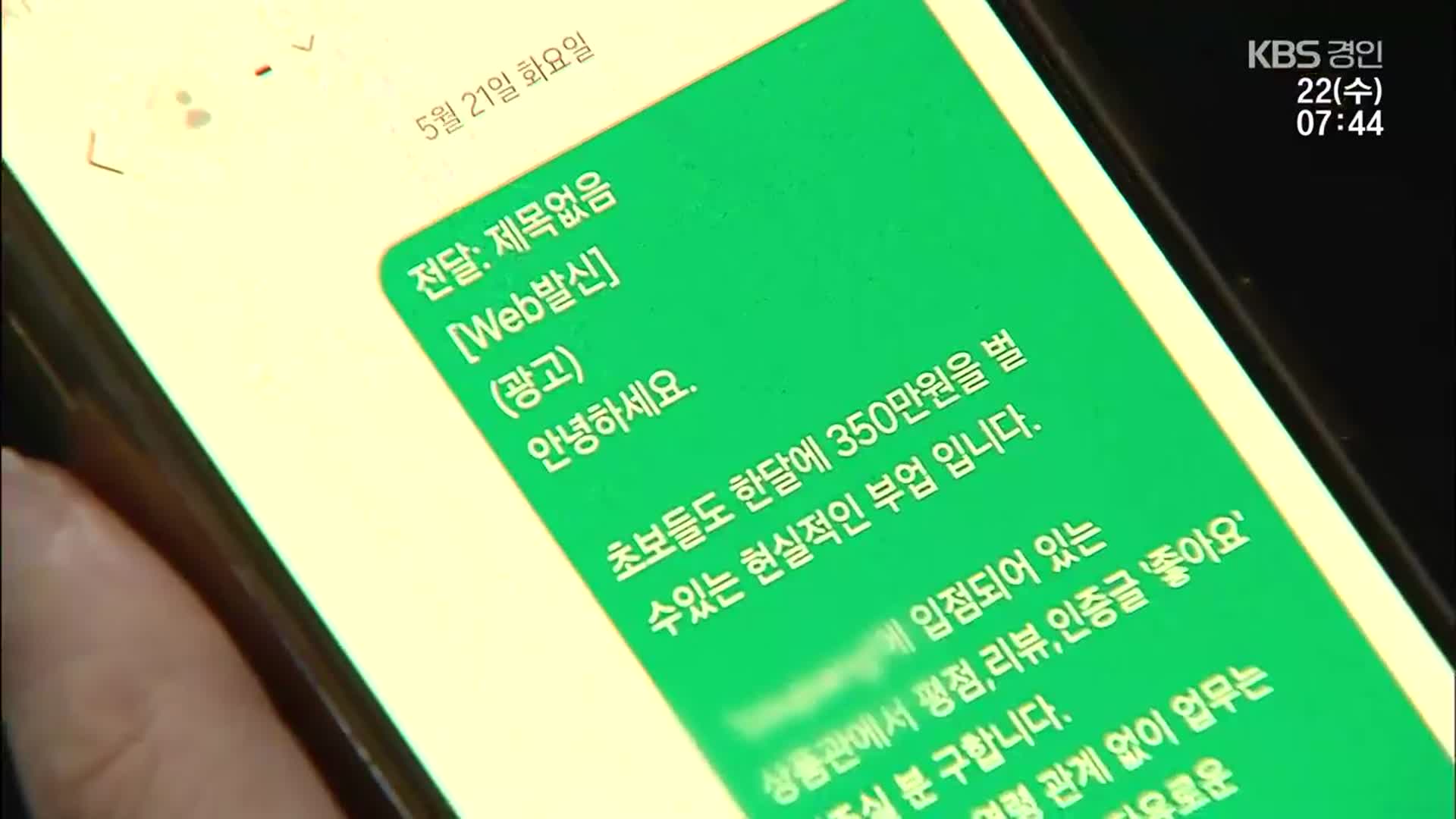 1. 문자메시지나 SNS를 통해 고수익 부업 홍보
