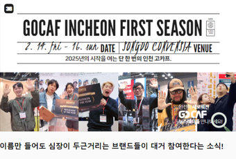 "2025 고카프 인천 퍼스트 시즌은 캠핑과 아웃도어 애호가들에게 최신 트렜드와 제품을 선보이는 국내 최대 규모의 축제입니다."