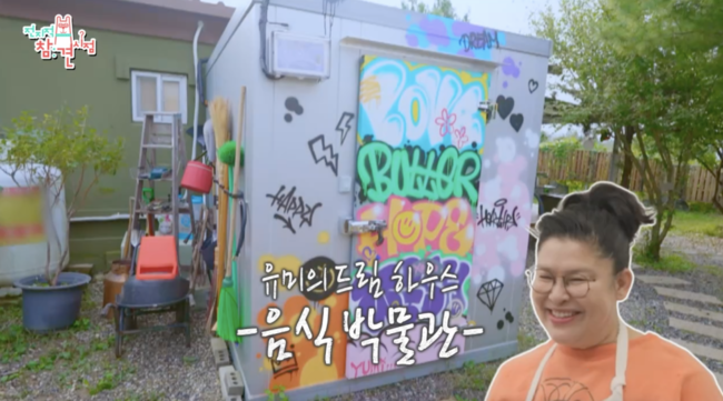 특히 주목할 만한 점은 그라피티로 꾸며진 컨테이너형 대형 야외 냉장고였습니다. 이 냉장고 안에는 전국 팔도의 김치와 각종 액젓, 장, 소스들이 가득 채워져 있었고, 심지어 제철 과일까지 종류별로 정리되어 있어 멤버들의 감탄을 자아냈습니다.